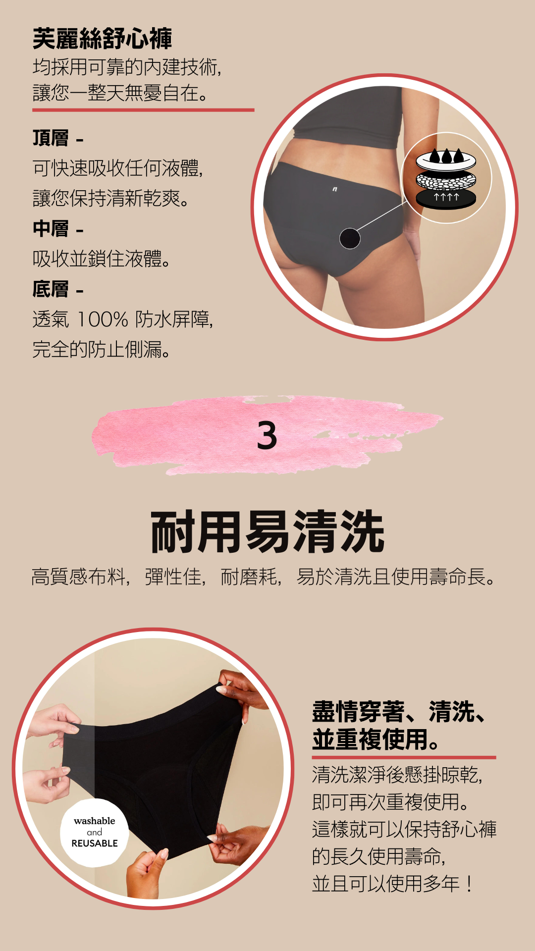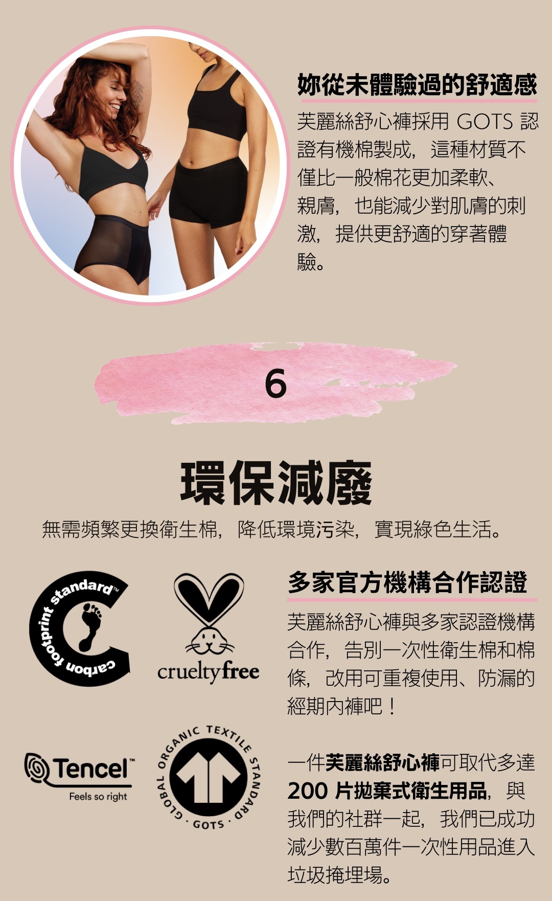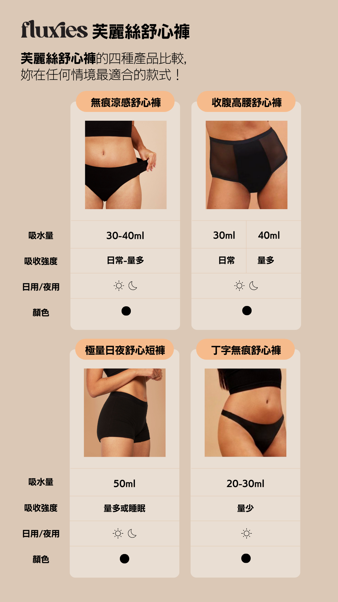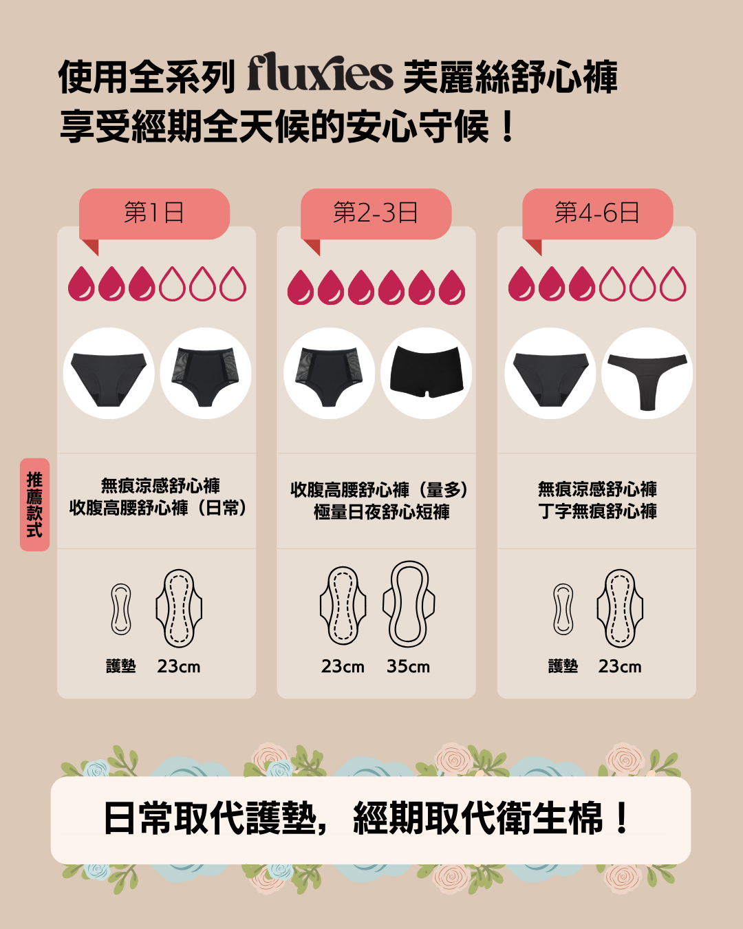 (Fluxies芙麗絲 舒心褲屬個人貼身衣物,拆封後基於個人衛生考量售出後恕不受理退換貨,請您務必再三確認尺寸,感謝!)