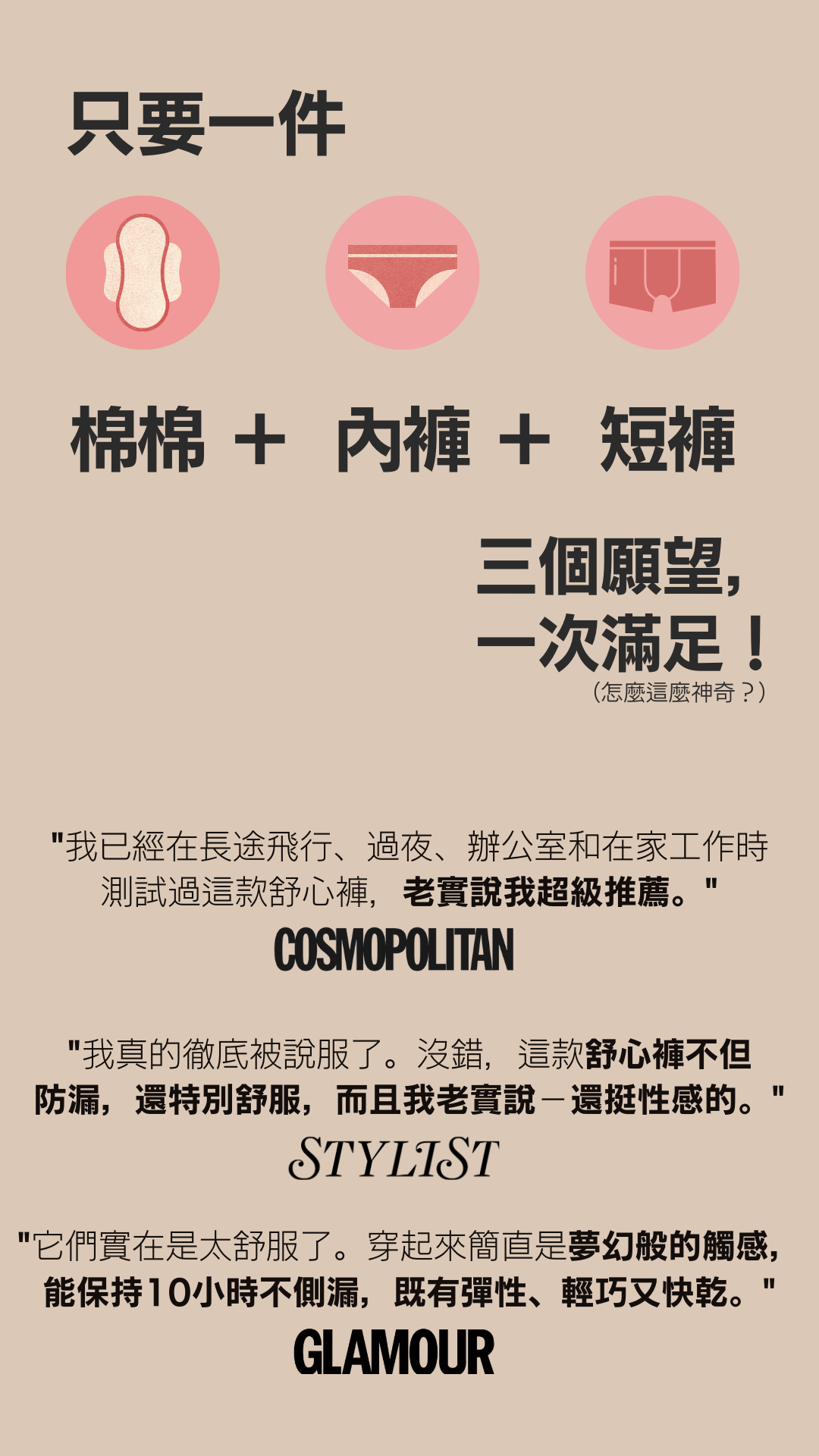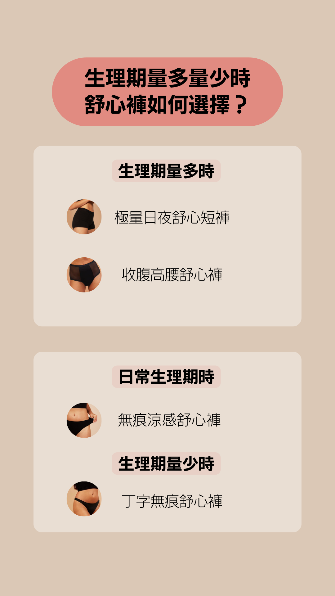 經期量多或想修飾小腹時就穿它!高腰設計能讓小腹看起來更平坦,前後加長防漏,兩側還帶點透膚感,性感又涼爽。一件能抵4~6片日用衛生棉,量多時穿著超有安全感。